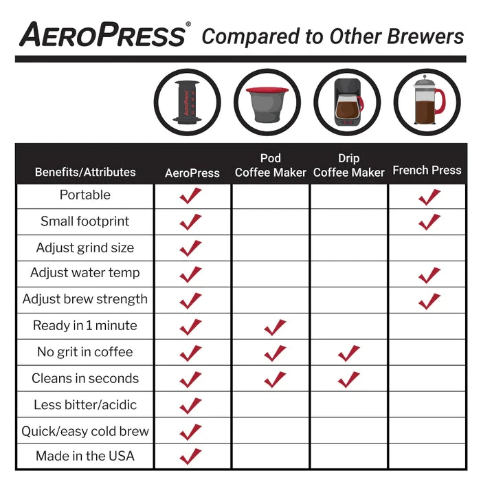 Brew American or espresso style coffee: Brews one to three delicious cups with one press. AeroPress Original can also make cold brew coffee as well as espresso-style coffee for lattes, cappuccinos, and more.