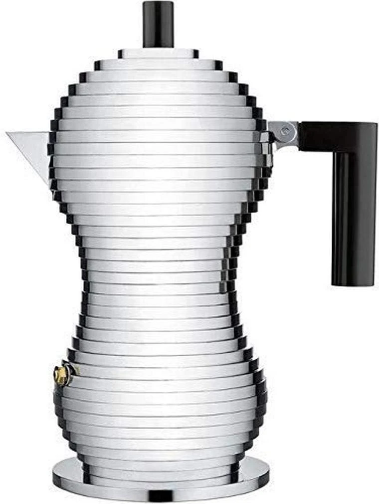 Designed by architectural visionary Michele de Lucchi, the Pulcina Espresso Coffee Maker encapsulates a small but substantial design innovation that stops dispensing the drink at the right time before the coffee gets a bitter aftertaste. This helps to enhance the full and rich aroma of your espresso. The spout, which recalls a chick’s beak (hence the name of the coffee maker – “pulcina” = “chick”) allows it to perfectly stop the drop.