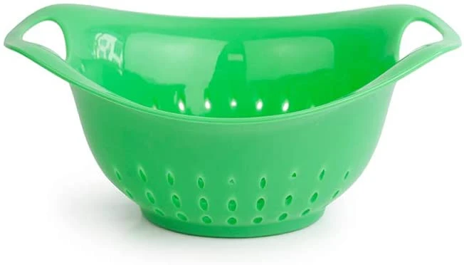 Architec™ Preps Colander. Elongated design prevents spillovers! Nonslip Gripper base. Dishwasher safe.