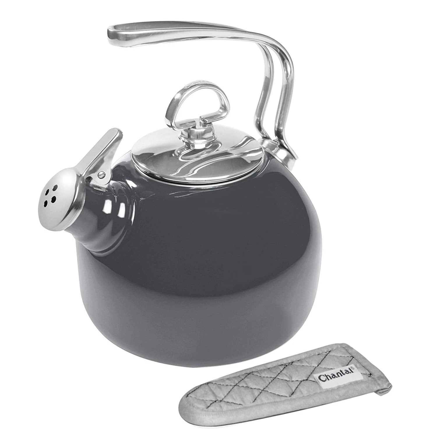 Our Classic Teakettle rocketed to popularity when introduced 30 years ago. The accolades continue for this timeless Chantal original, sure to remain a design icon and home favorite for the foreseeable future. This kettle is part of Chantal’s Classic Series which includes the finest teakettles from our collection. Each design offers incomparable elegance and is designed for exceptional use. Featuring our exclusive two-tone harmonica whistle, this kettle doesn’t just whistle – it sings! The smooth, flat base creates maximum contact for rapid boiling, and the extra large opening allows for easy cleaning and handling. 1.8 qt. functional capacity. Enamel-on-Steel teakettles are made with magnetic carbon steel which means they will work on all cooktops INCLUDING induction. Includes FREE quilted mitt for your convenience. Limited warranty.