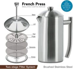 ESPRO P1 Double Walled Stainless Steel Vacuum Insulated Travel Coffee French Press, 12 Ounce, Black