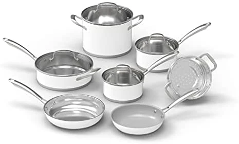 - Premium nonstick interior and elegant matte white exterior