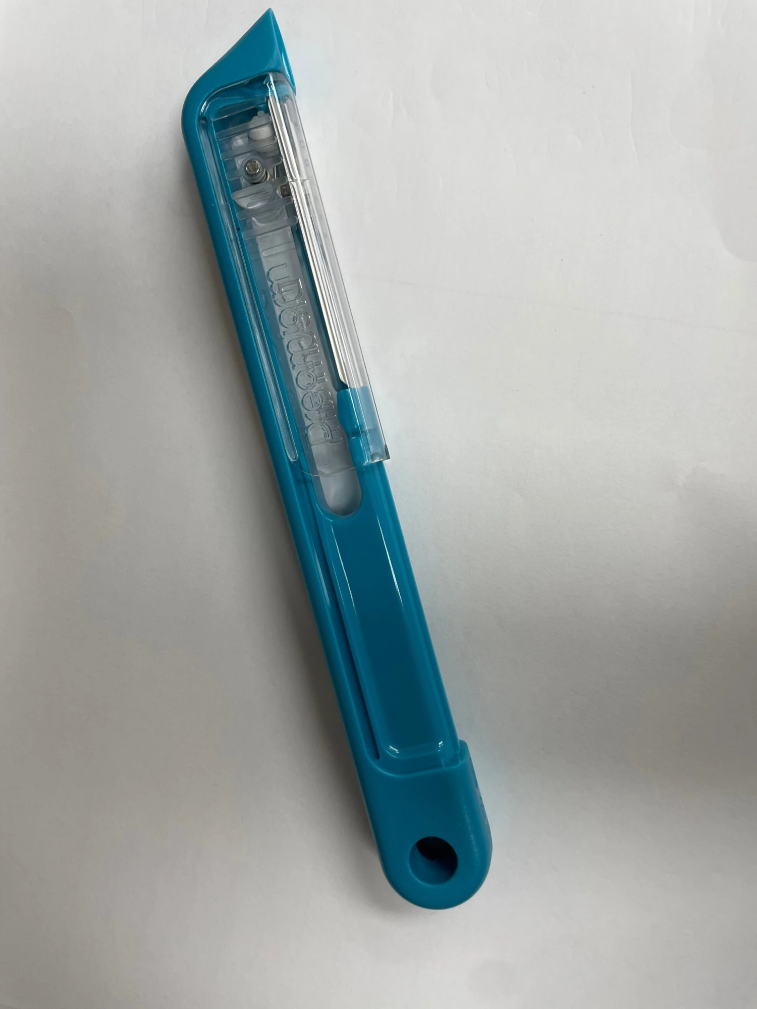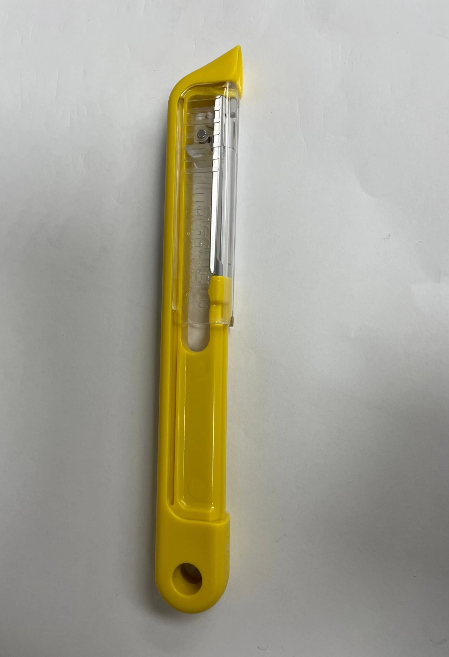 Unique safety cover has a built-in ceramic ball sharpener that automatically sharpens and hones the blade every time the protective case is opened or closed.
