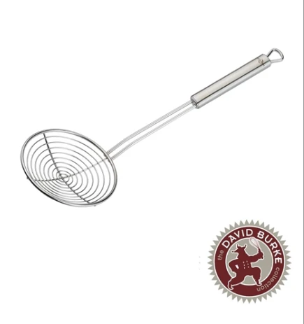 Chef Burke is proud to include the Parma Wire Skimmer/Wonton lifter in his exclusive collection. Made of 18/10 stainless steel, and a triangular handle that provides a secure grip, this item can help you easily scoop up hot foods from boiling water or oil. Dishwasher safe, and with a hanging ring for easy storage, this Wire skimmer/wonton lifter is the perfect addition to your kitchen!