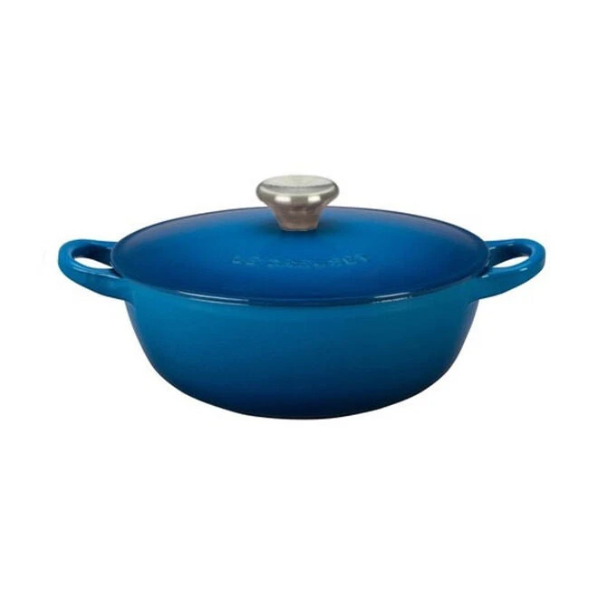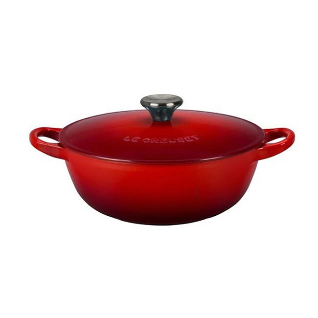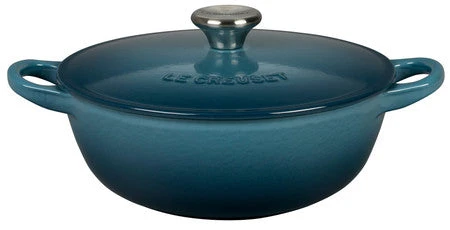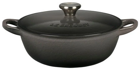 Whether preparing a garden vegetable blend in chicken stock or slowly building a rich cream base for broccoli and cheese soup, the chef’s oven is the ideal vessel for stovetop simmering. Its sloped sides make stirring more efficient and effective by promoting continuous movement even after the lid is in place. The pot’s loop handles provide a steady grip when transferring a full pot from the stovetop to the table.