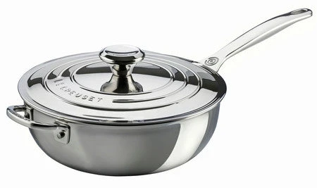 A saucier pan, sometimes called a chef’s pan, is designed with a rounded bottom to keep ingredients moving, and flared sides to facilitate easy whisking and stirring. It is particularly suited to dishes that involve constant stirring, such as sauces, risottos and custards. Ergonomic handles make for convenient carrying and lifting.