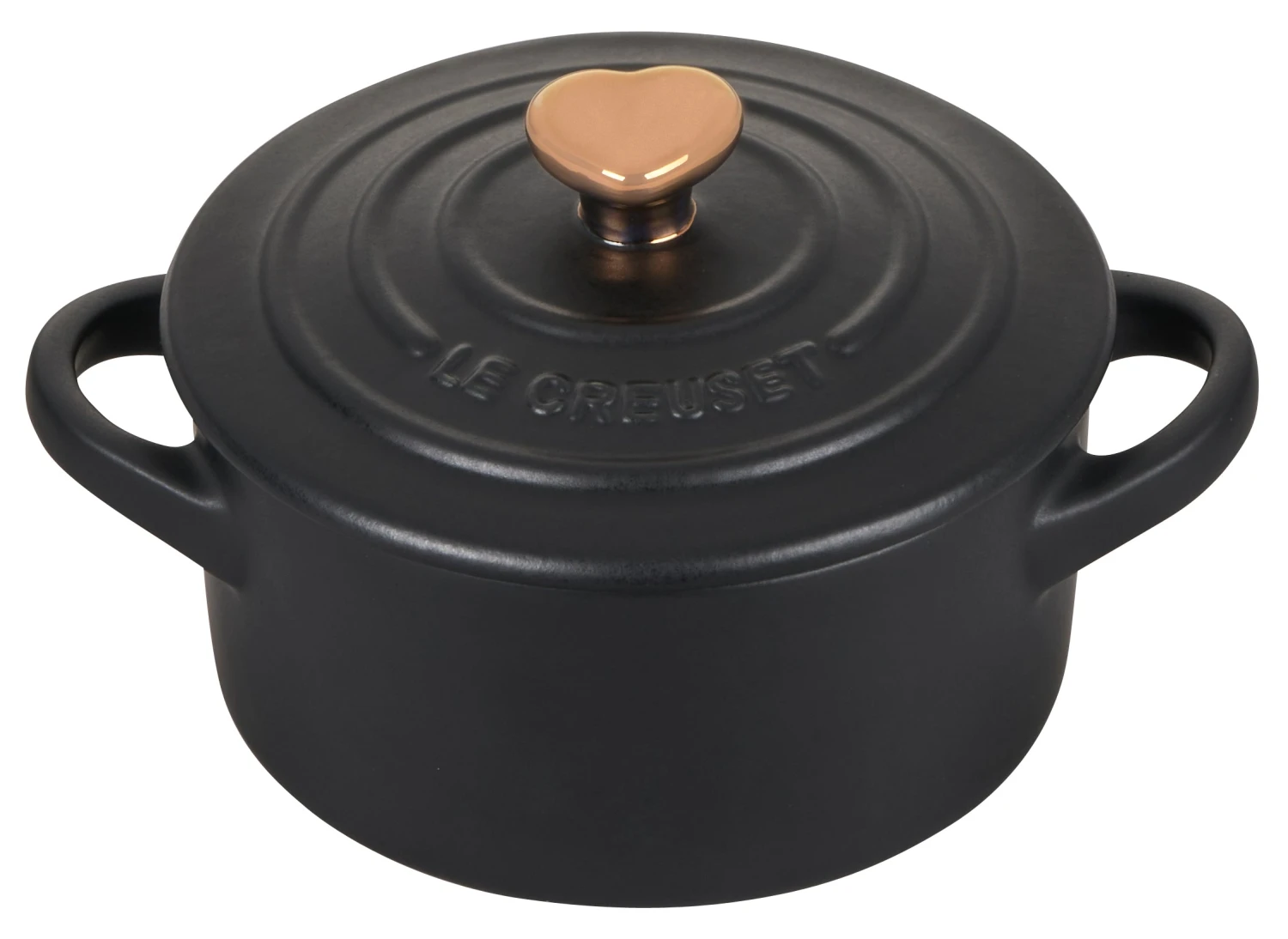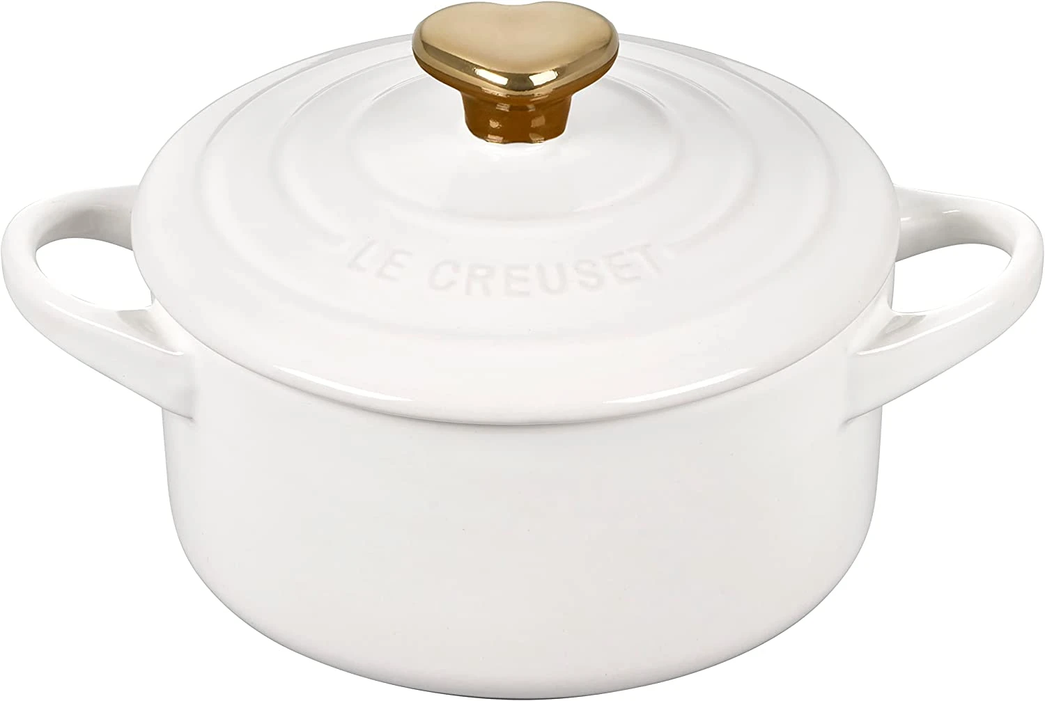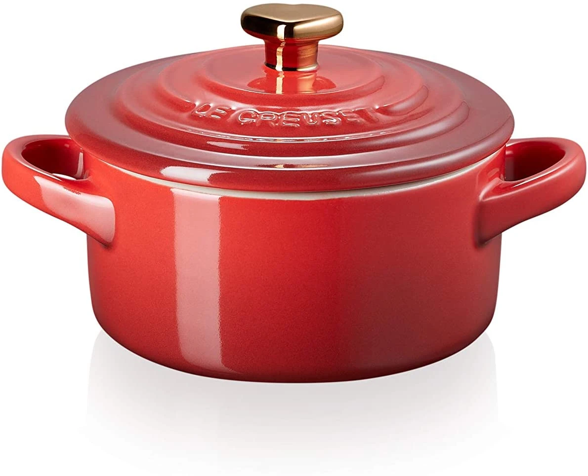 Surprise your loved one with sweet treats baked in the Mini Cocotte topped with a heart knob painted with real gold foil. It’s perfect for sharing the love, and is the ideal size for cobblers, gratins and pot pies. Cocottes are also versatile for prepping and storing ingredients or a light-hearted decorative accent in the kitchen. Crafted from premium stoneware to ensure food is cooked to perfection, the cocotte features a colorful glaze that is virtually nonstick for easy cleanup.