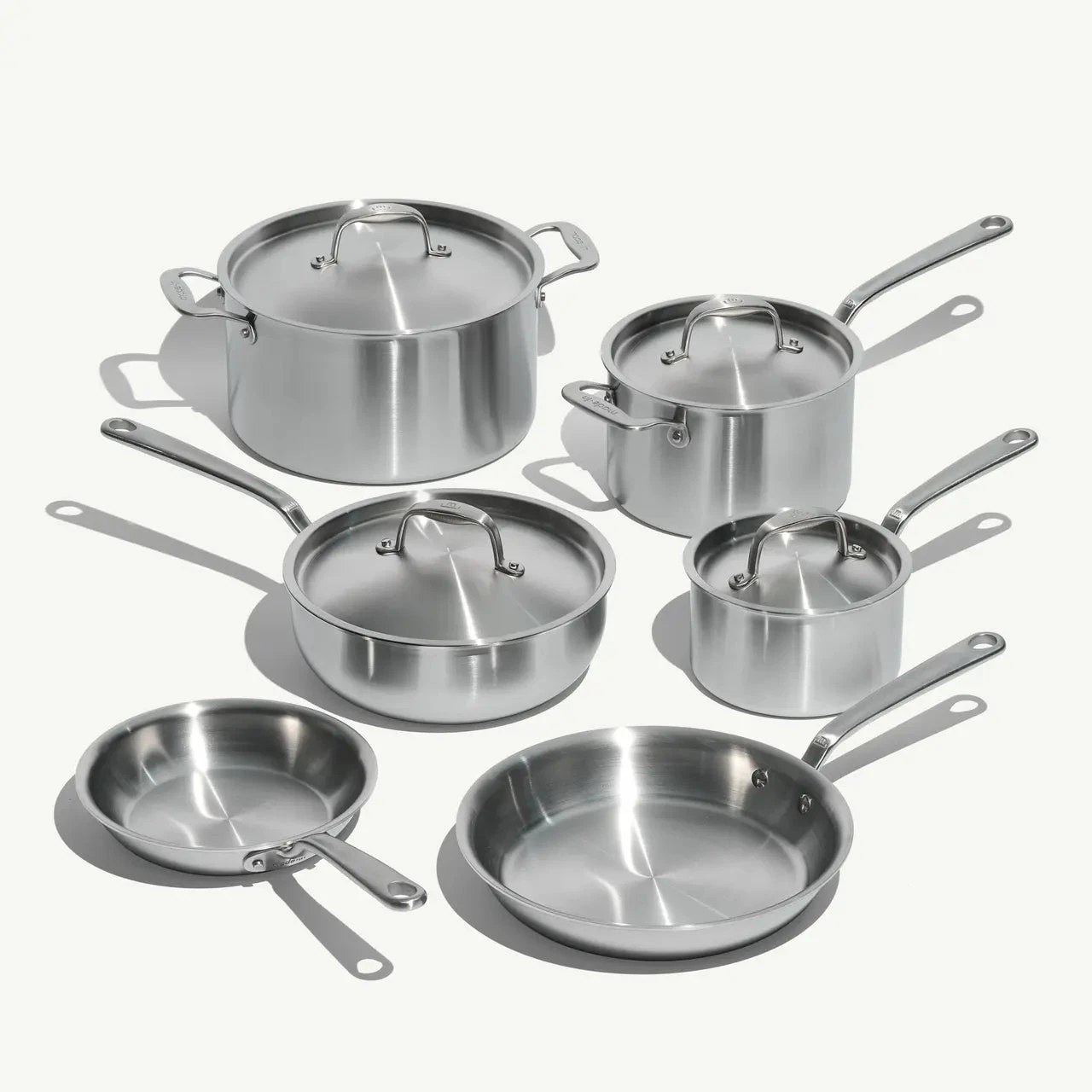 With a high-performing mix of our best sellers, the 10-Piece Set is curated by chefs to bring you a much-needed cookware reset. This Set features a range of nearly indestructible Stainless Clad tools that will help you craft chef-quality meals, fill the gaps in your kitchen, breathe new life into your routine recipes, and inspire new favorites.