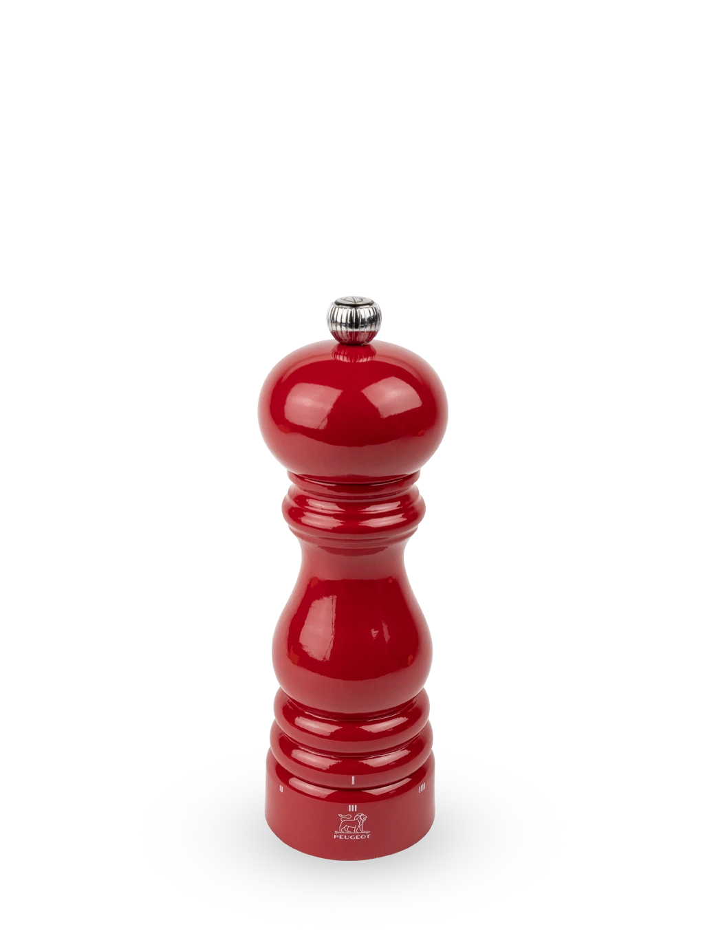 The 18 cm – 7in Paris u’Select fiery red-lacquered pepper mill is a clear showstopper and will reveal the full flavour of your culinary creations with a quick twist of the wrist. This manual pepper mill is made entirely in France. The body is crafted from wood sourced from local PEFC-certified forests. The u’Select grind adjustment ring at the base of the mill allows users to accurately select their preferred grind setting. Six grind presets are available: 1 for the finest grind and 6 for a coarser grind.