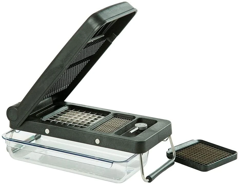 - EFFICIENT AND CONVENIENT: For the easiest cutting experience, make sure you’re cutting over the bin or a cutting board; Dimensions (L x W x H): 11.5 x 5 x 4 inches