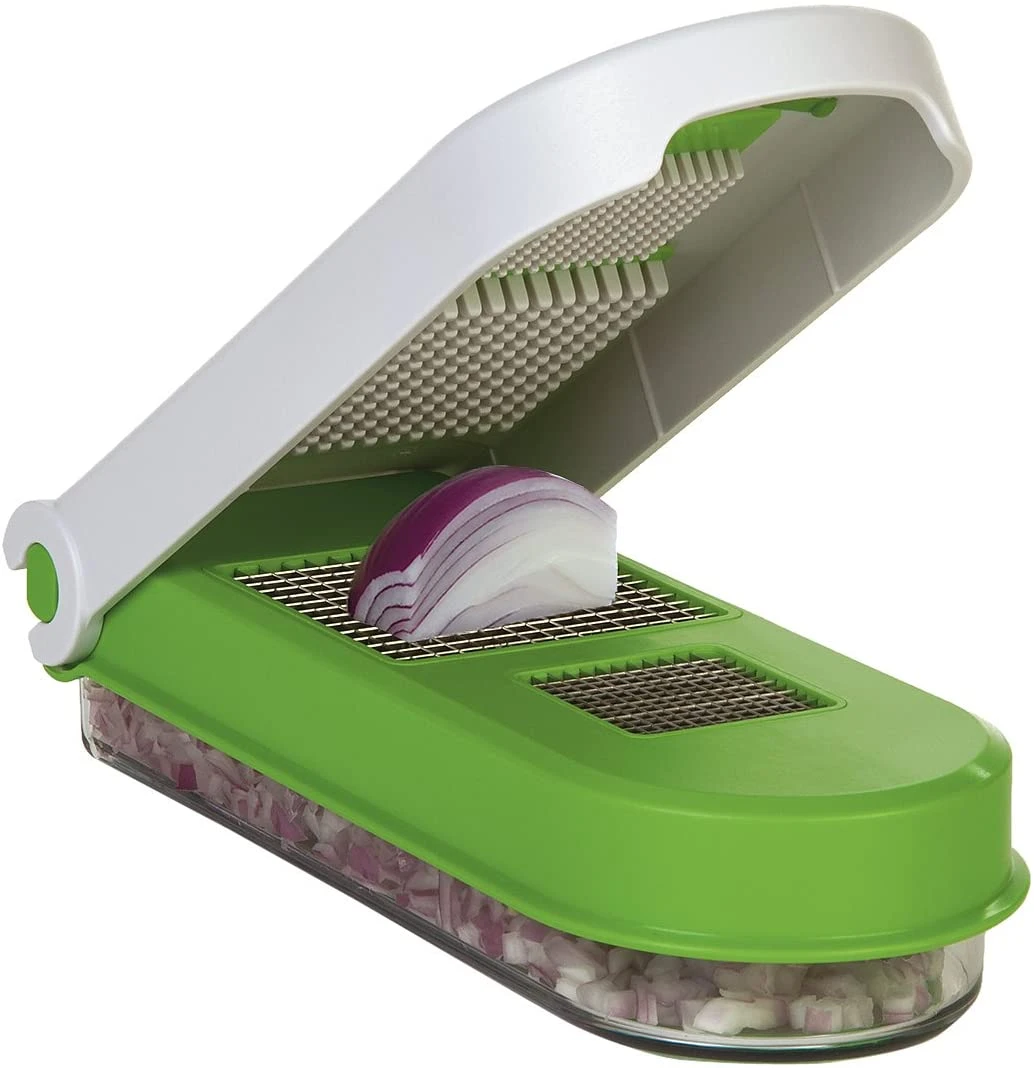 - Removable reinforced plastic lid; includes a dedicated section for chopping garlic