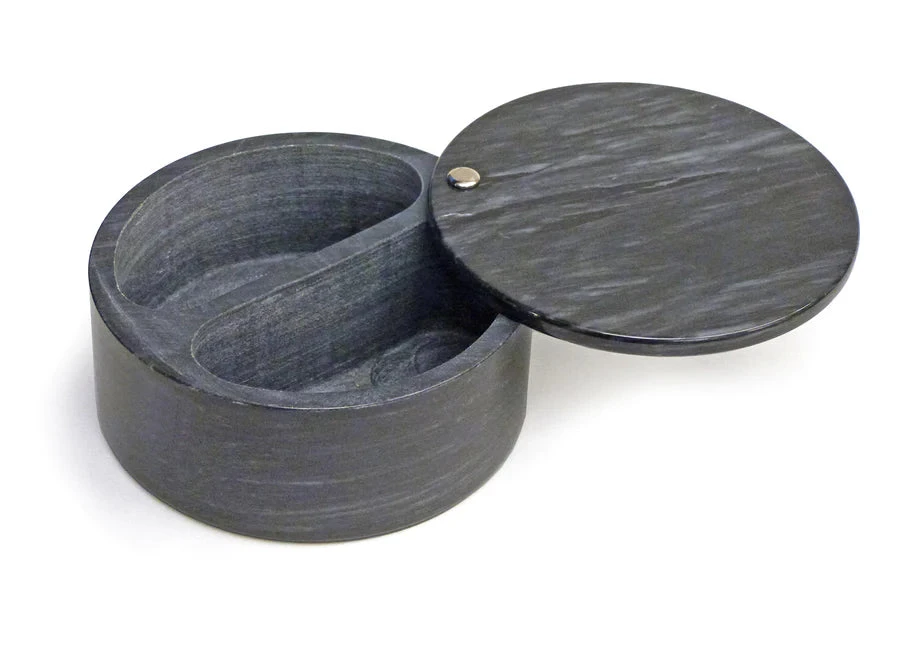 - Made of Italian sourced olive wood, the dual compartment container stores 4-ounces of your favorite salts, peppers, sugars, spices or herbs on either side.